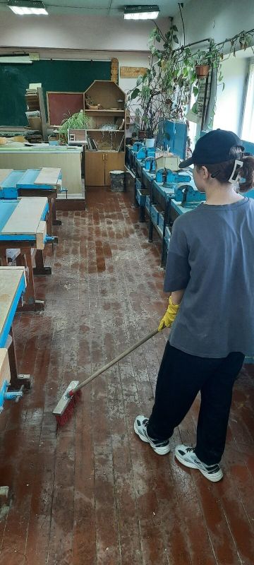Трудились 5 подростков. Несовершеннолетние граждане 14 и 15 лет приступили к работам по подготовке нашей школы к новому учебному году. Школьники готовили учебные аудитории к Дню знаний, занимались благоустройством пришкольных территорий и подсобных помещений.