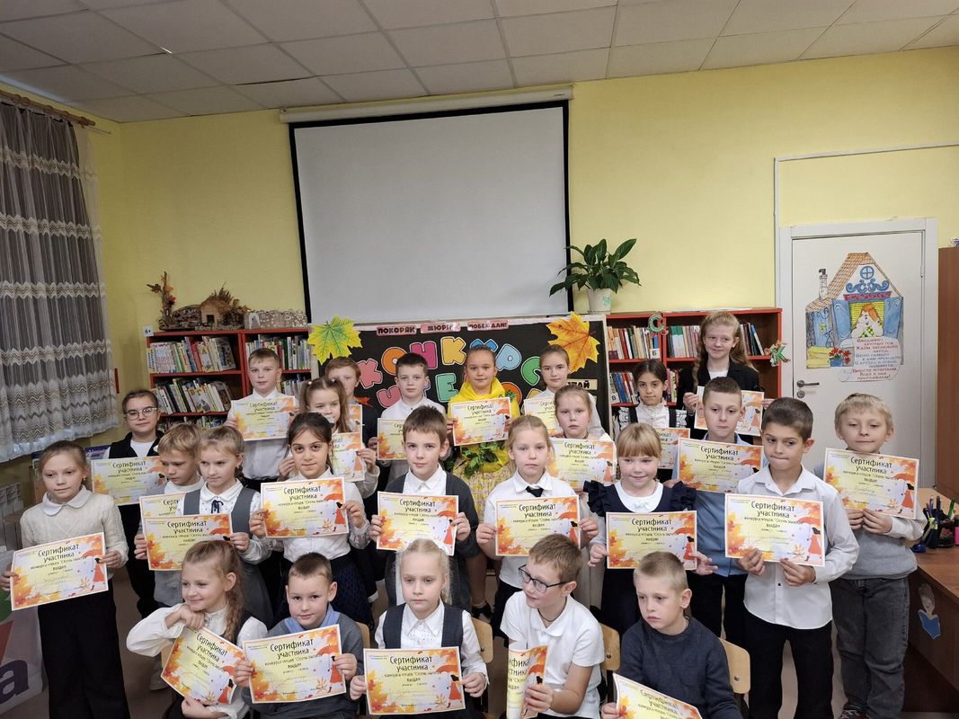12 ноября в начальных классах прошел конкурс чтецов стихов " Золотая осень".Осеннюю природу воспевают в своих произведениях многие поэты.Все дети учили свои стихи дома с родителями, поэтому и родители не остались в стороне и сумели внести вклад в развитие своего ребенка.Наши конкурсанты очень старались читать стихи с выражением, не все получилось у всех гладко, но ведь самое главное, это участие, положительные эмоции.Основная ценность данного конкурса заключается в том, что способствует развитию речи детей, а также развитию личности, формированию его творческих способностей. Все участники были награждены сертификатами, а победители дипломами. Поздравляем всех участников и благодарим их за ту волшебную атмосферу, которую они создали! Выражаем слова благодарности родителям детей,нашему уважаемому жюри : Наталье Александровне, Татьяне Сергеевне. Елене Николаевне, нашему библиотекарю и классным руководителям 1- 4 классов.